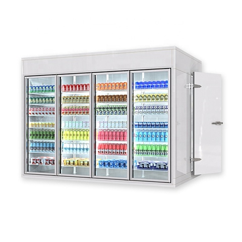 Refrigerador personalizado para exposição de frutas e bebidas, refrigerador com 4 portas de vidro, armário de exposição para loja de conveniência